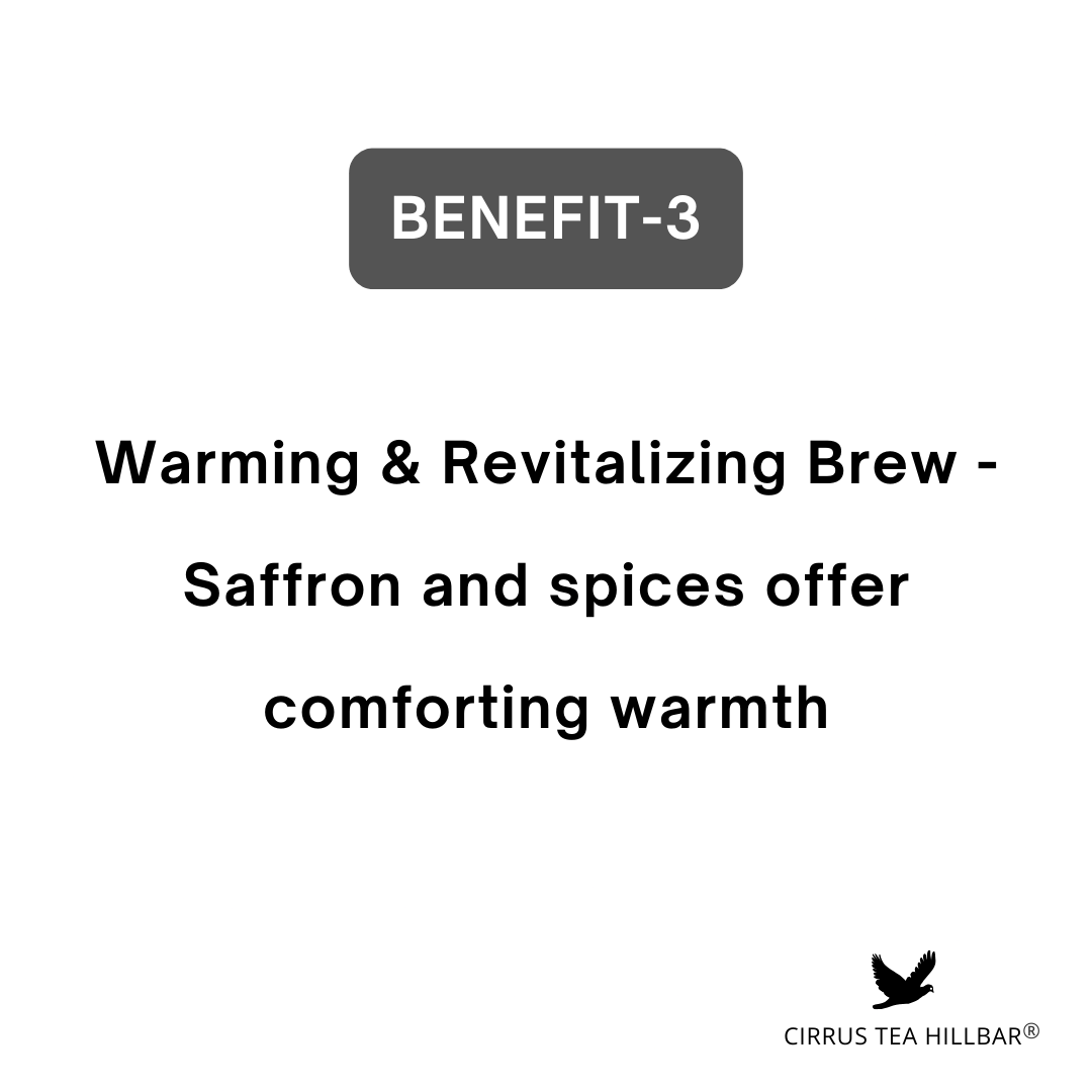 Inspired by the revered Kashmiri Kahwa, this blend is more than a sensory delight — it carries the holistic benefits of green tea and traditional botanicals. Naturally rich in antioxidants like catechins and polyphenols, Kahwa helps protect cells from oxidative stress and supports immune wellness. The warming spices and saffron may aid digestion, enhance metabolism, and promote gentle detoxification, while cardamom and cinnamon bring comforting flavour and may help soothe the stomach and stimulate circulation. Almonds add a touch of richness and nourishment, and the saffron’s aromatic presence is traditionally associated with elevated mood and radiant vitality. Together, these ingredients create a refined tea that nurtures the body and calms the mind — an ideal companion for mindful moments and everyday wellness.
