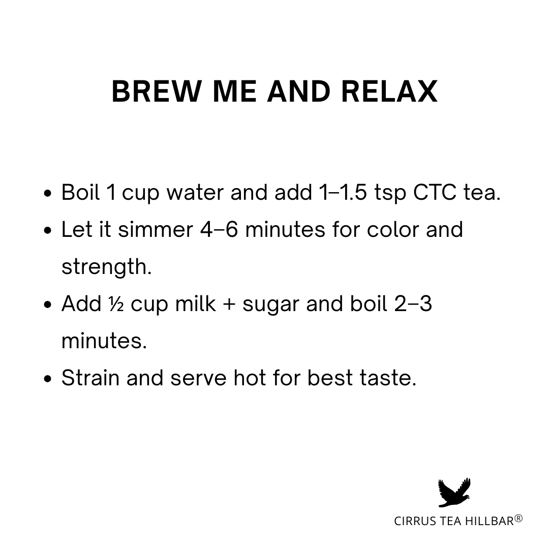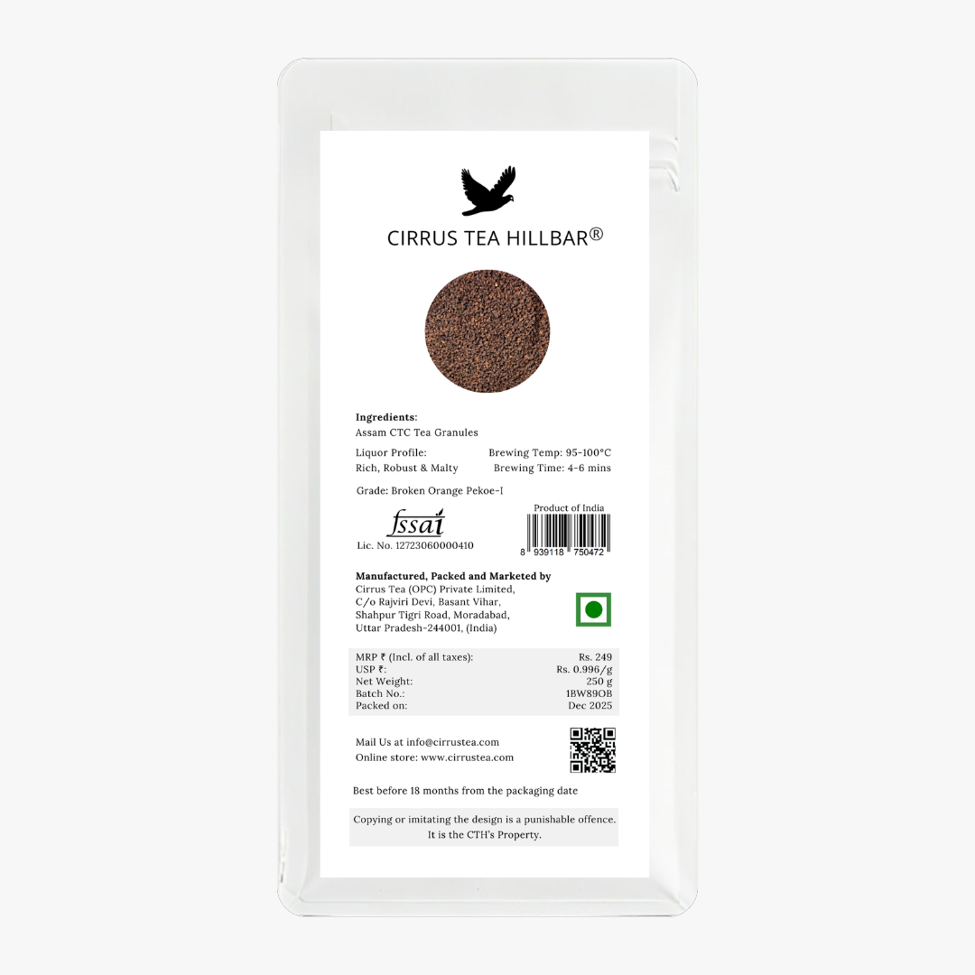Cirrus Tea Hillbar proudly presents O’Benir, a distinguished single-origin CTC tea of BOP-1 grade crafted from second-flush leaves harvested at a high-grown tea estate. Bold, brisk, and full-bodied, this robust infusion delivers a rich coppery liquor that pairs beautifully with milk, offering a smooth yet invigorating cup. Carefully processed to preserve its natural strength and consistency, O’Benir reflects the purity of its origin and the character of fine CTC craftsmanship-perfect for those who appreciate a strong, comforting tea that energises the senses and elevates everyday moments.